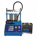 Стенд для проверки и промывки 6 инжекторов в ультразвуковой ванне. Автоматический слив тестирующей жидкости. Работает от сжатого воздуха. Имитация работы форсунок происходит с помощью встроенного электронного блока управления форсунками. В комплект поставки входит ультразвуковая ванна объемом 2,0 литра с подогревом и мощностью генератора 60 ВТ.