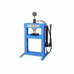 Усилие 10 тонн. Настольный. Ручной. Для запрессовки подшипников, деталей машин, втулок и т.п. в автосервисе, мастерских по ремонту лодочных моторов, велосипедов и т.п. Гидроцилиндр с пуансоном имеет возможность перемещения по всей ширине рамы. Контроль усилия – визуально по шкале манометра. Интервал пуансона 135 мм. Рабочее окно: 400 x 350 мм.