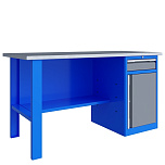Верстак однотумбовый поставляется в разобранном виде. Нагрузка на столешницу до 600 кг. Стандартный цвет: корпус - серый глянец RAL 7030, ящики и двери тумб - синий RAL 5017. Размеры:855x1400x700 мм. Вес: 79 кг.