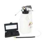 Для слива и откачки щупами масла и антифриза из ДВС, КПП и мостов. В комплекте: Колба с особо прочным пластиком + Сливная чаша с сеткой для улавливания мелких деталей + Щупы с металлическими наконечниками 6 шт. + Лоток для сливной пробки + Металлические пистолеты для откачки масла + Стрелочная индикация уровня разрежения в установке + Быстросъёмный штуцер для пневмолинии + Визуальный контроль уровня отработки + Сепаратор для выхода воздуха. Вмещает 100 л. = Бак 80л + колба 10 л. + сливная воронка 10л.