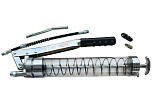 Контроль расхода и остатка смазки благодаря прозрачному корпусу. Емкость 0,9л (900 см³). Оснащен резиновой ручкой противоскольжения. Предусмотрен нажимной клапан для сброса давления. В комплекте: для удобной подачи смазки применяются трубки, наконечники и шланги. Для применение в стационарных и полевых условиях. Рабочее давление: 306 Атм. Давление на разрыв: 816 Атм. Вес: 1,29 кг. ТОЛЬКО ДЛЯ ПЛАСТИЧНЫХ (ГУСТЫХ) СМАЗОК!!!