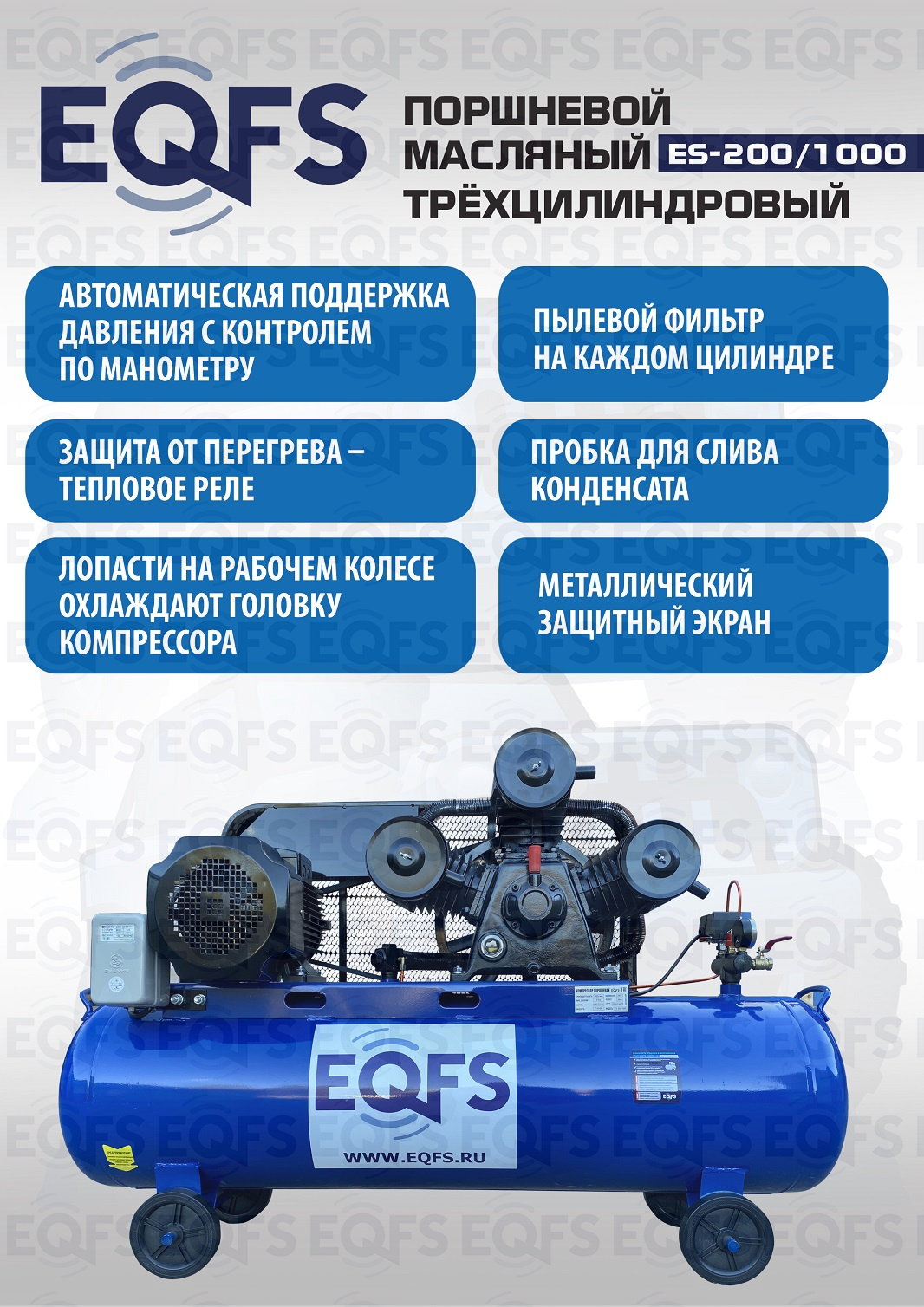 Компрессор воздушный, передвижной, поршневой, масляный, трёхцилиндровый. Быстро достигает нужного давления. Трёхпоршневая головка двигателя уменьшает износ деталей и увеличивает срок службы. Ременной привод — предохранят мотор от поломки. Идеальное решение для шиномонтажа, автосервиса, строительства, покраски, промышленности. Давление 8 Атм. Производительность 1000 л/мин. Мощность 7,45 кВт. Напряжение 380В. Ёмкость ресивера 200 л. Гарантия 12 месяцев.