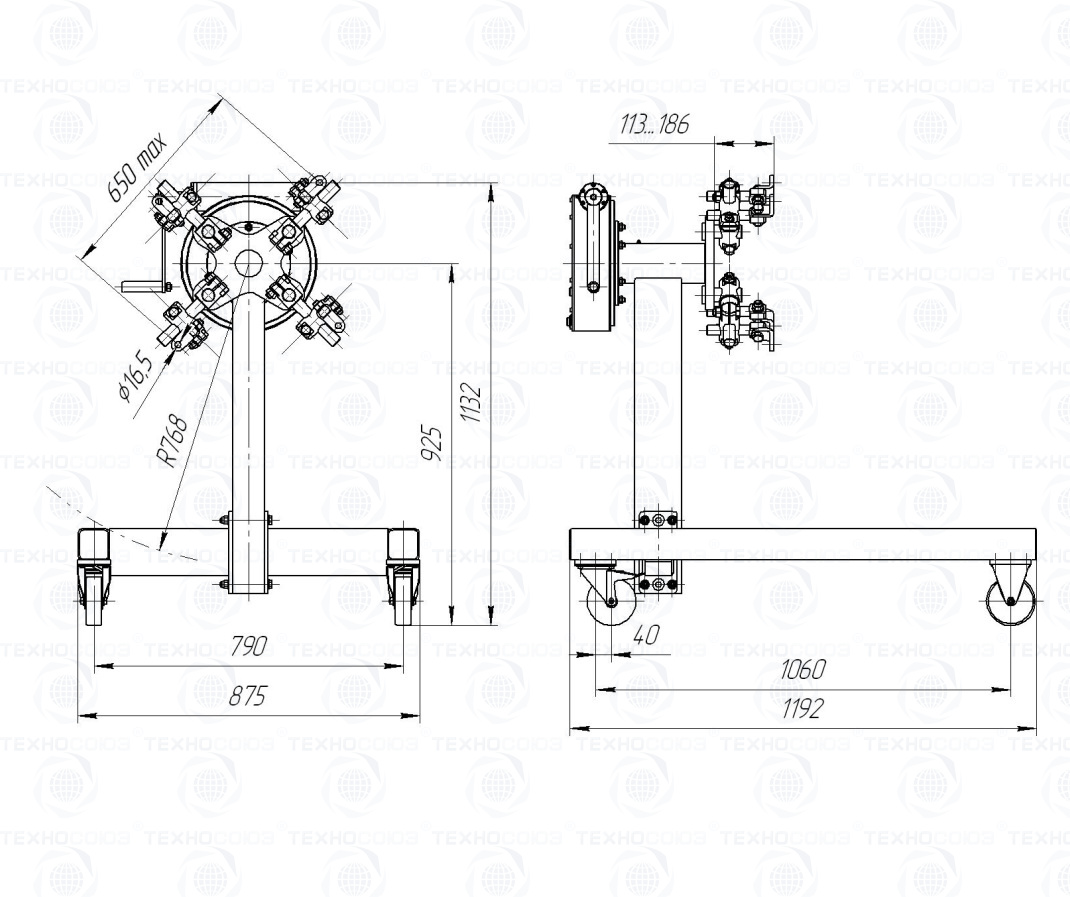 универсальный стенд имеет подвижные опоры для транспортировки к месту ремонта и опоры для станционарной установки;