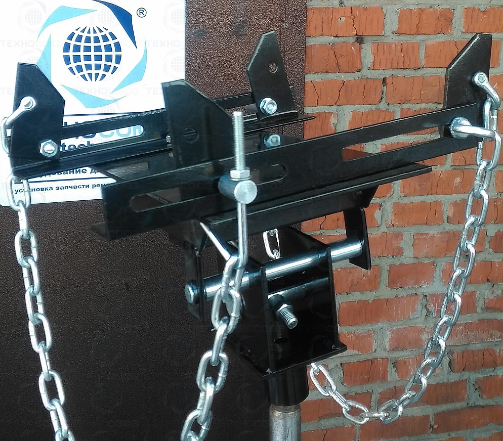 Для трансмиссионных стоек . Диаметр посадочный 30 мм. Нагрузка макс. 500кг. С цепями для фиксации агрегатов в процессе демонтажа и монтажа. Регулировка с фиксацией в трех плоскостях: продольно, по наклону, по оси вращения.