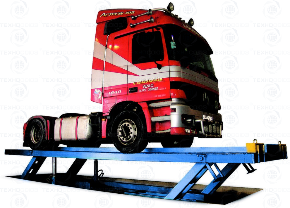 г/п. 12 тонн. Ножничный. Электрогидравлический. Длина платформ 7 300 м. Для подъема грузовых автомобилей, автобусов, специальной техники, строительных и сельскохозяйственных машин при выполнении работ по диагностике, техническому обслуживанию, ремонту, также на линиях инструментального контроля.