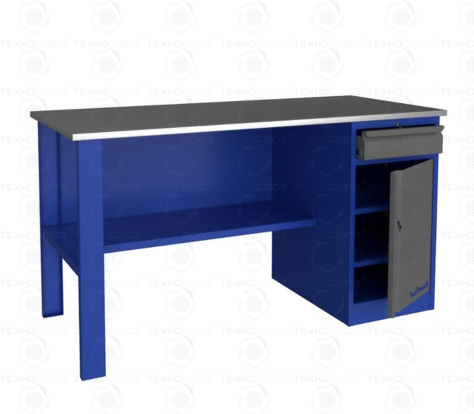 Для организации рабочих мест в автосервисах, мастерских, цехах и т.д., компания разработала линейку верстаков и рабочих столов. Основания этих изделий изготовлены из листового металла и покрыты порошковой краской. Столешницы сделаны из фанеры толщиной 24 мм. и обшиты оцинкованным металлом толщиной 1 мм. Cтолешница 1400 мм (фанера 24 мм + оцинкованный металл 1 мм), опора, тумба с ящиком и дверью, полка-стенка.