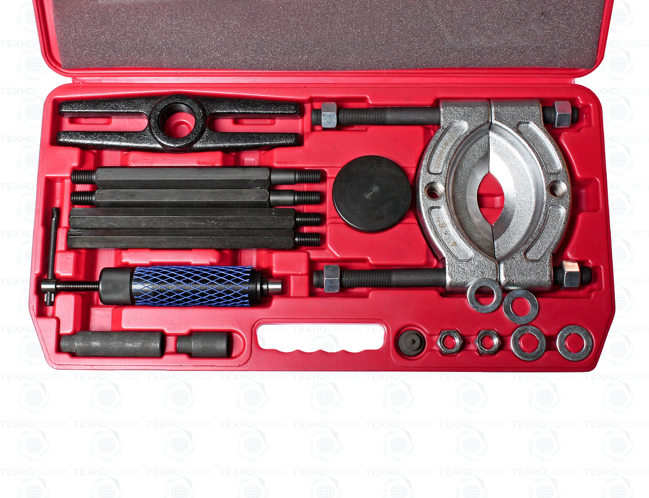 • Демонтирует подшипник с помощью Н-образной балки и болтов.