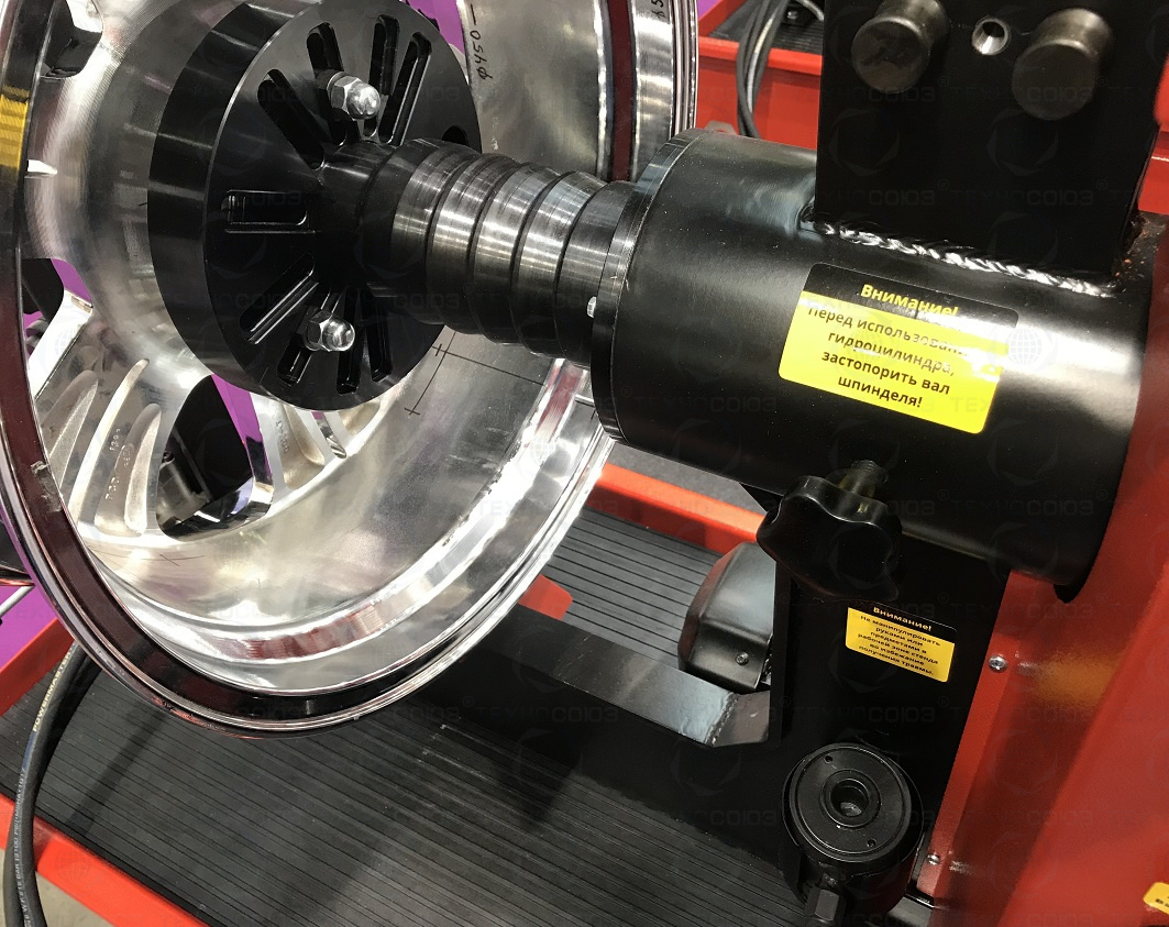 Разница между этим станком и хорошо себя зарекомендовавшим станок для правки дисков Фаворит это возможность изменять наклон рабочего кронштейна. Для установки диска часть скобы отводится в нерабочее положение, затем диск устанавливается на планшайбу, скоба возвращается в рабочее положение и фиксируется. Опция особенно удобна при работе с большими и широкими дисками.