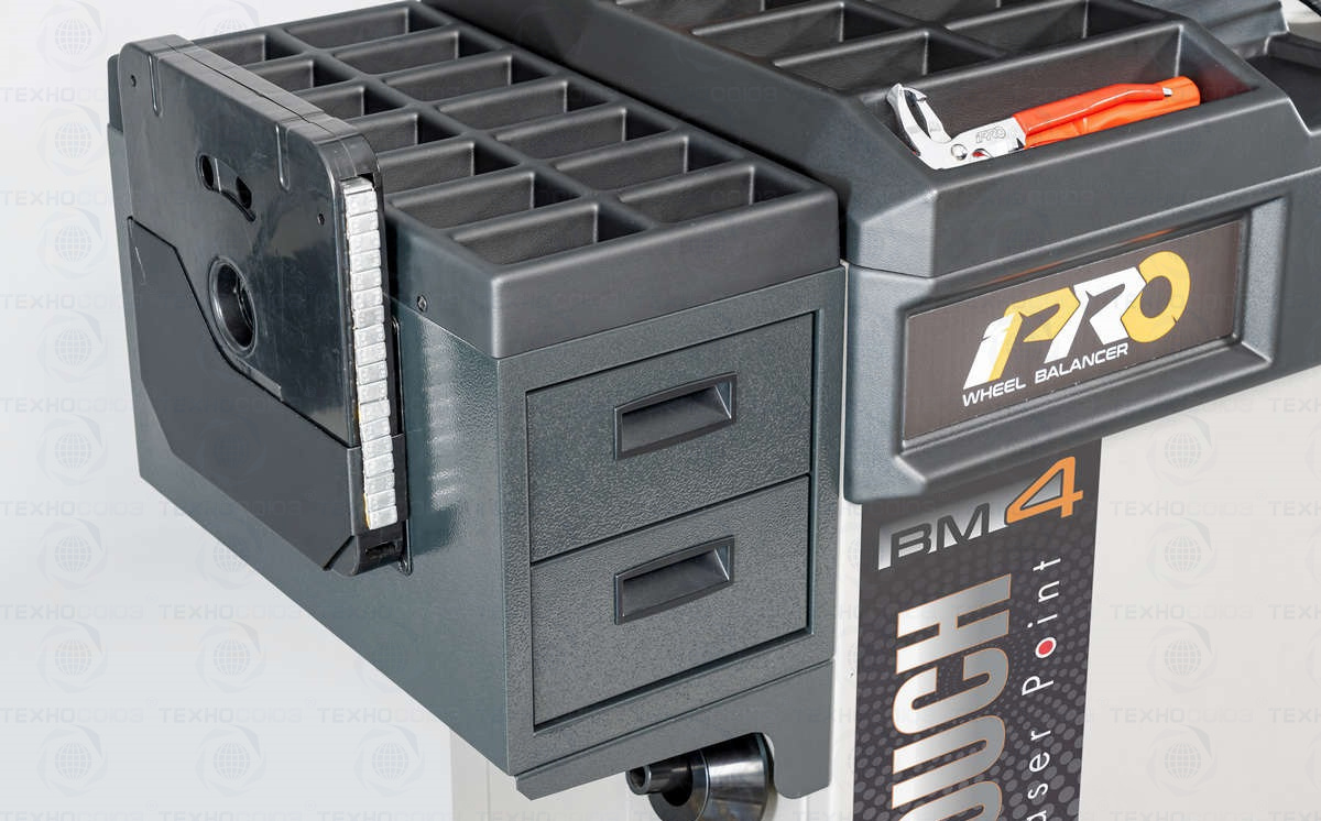 • Дополнительные емкости с выдвижными ящиками для хранения коробок с балансировочным грузами и других приспособлений.