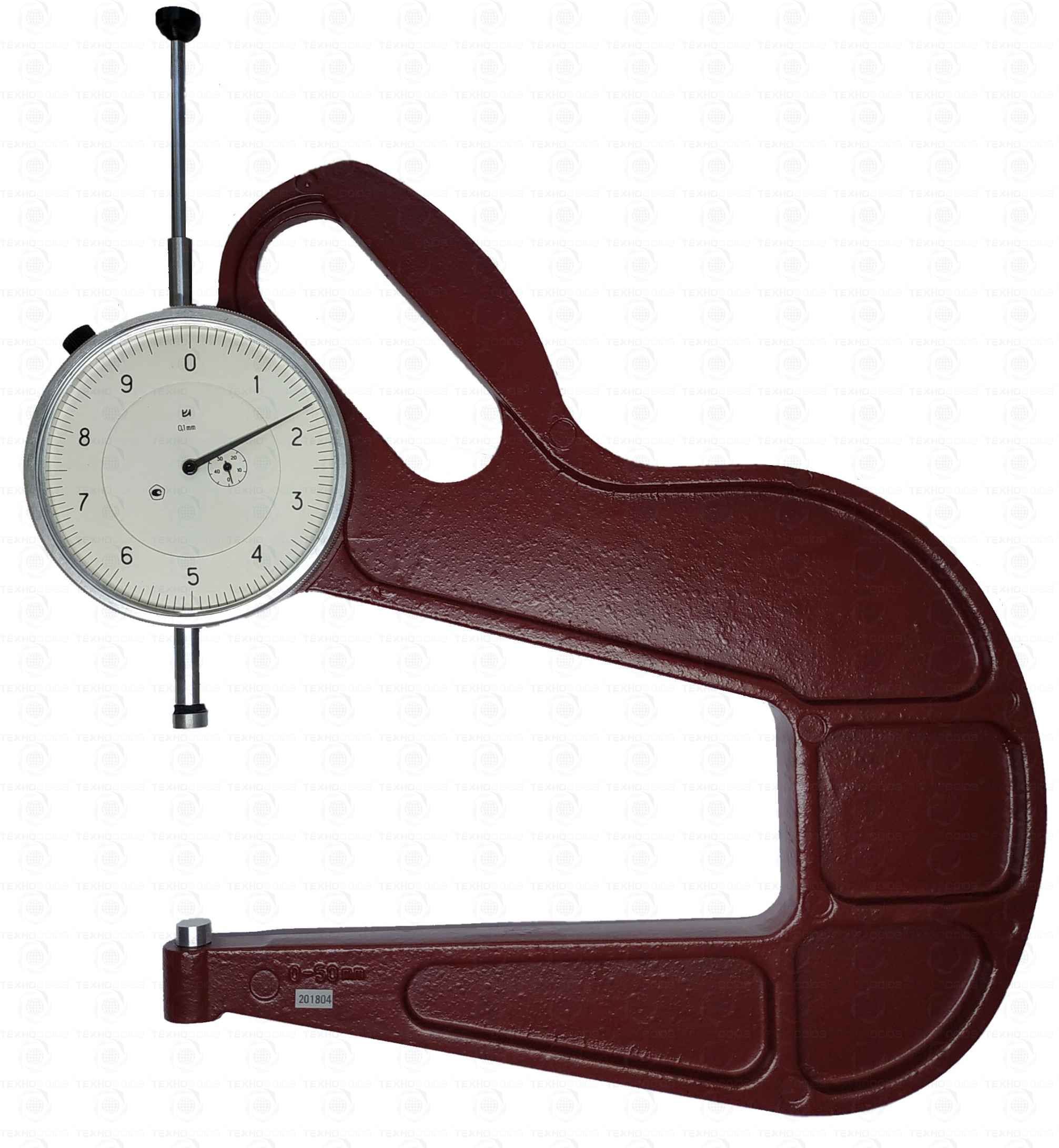 Толщиномер представляет собой скобу, в которой сверху расположено отсчетное устройство с измерительным наконечником , а снизу запрессована пятка. У толщиномера без нормированного измерительного усилия измерительный стержень возвращается в исходное положение возвратной пружиной.
