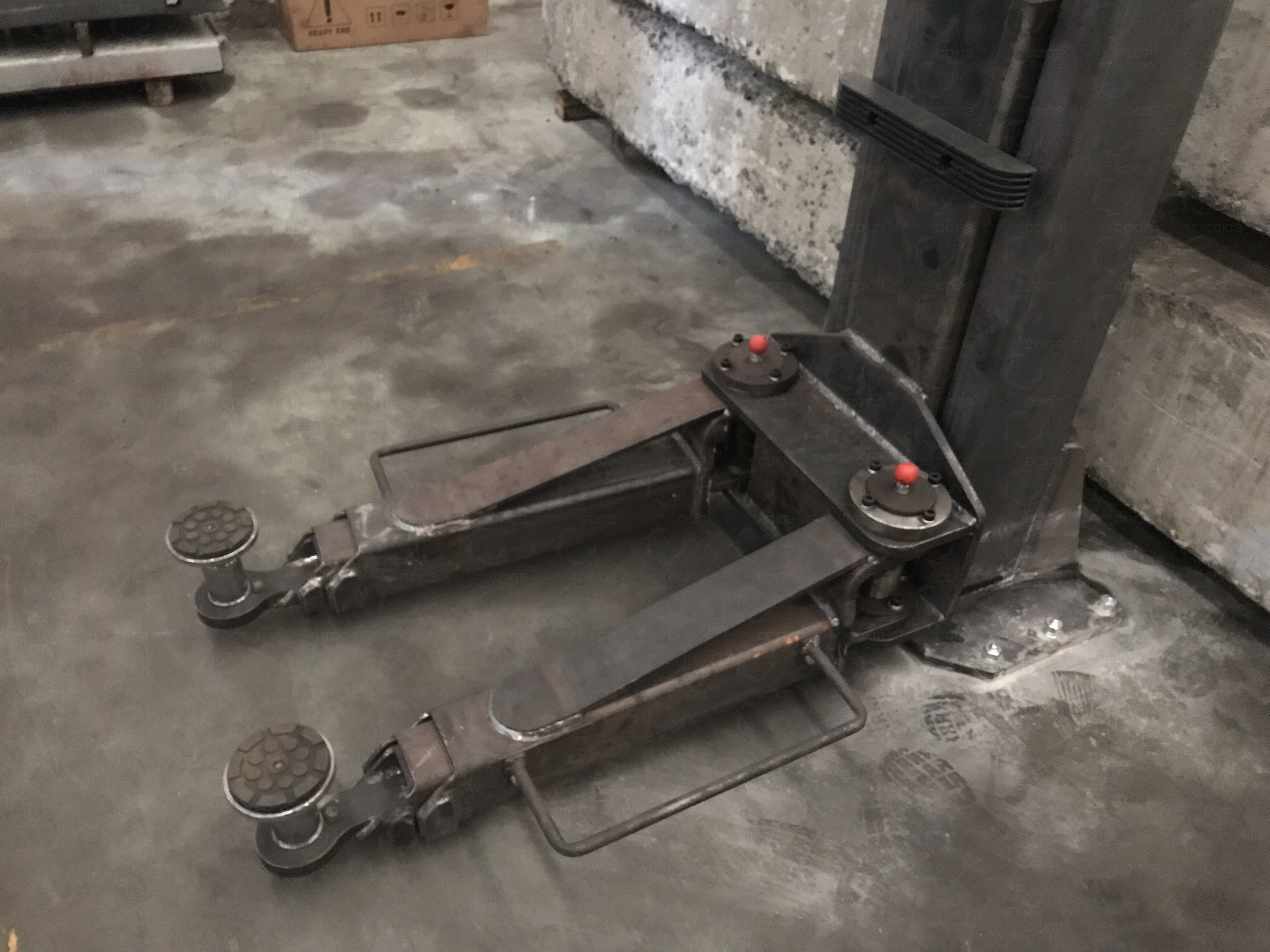 Два гидроцилиндра, распределяют нагрузку равномерно на 2 подъёмные цепи.