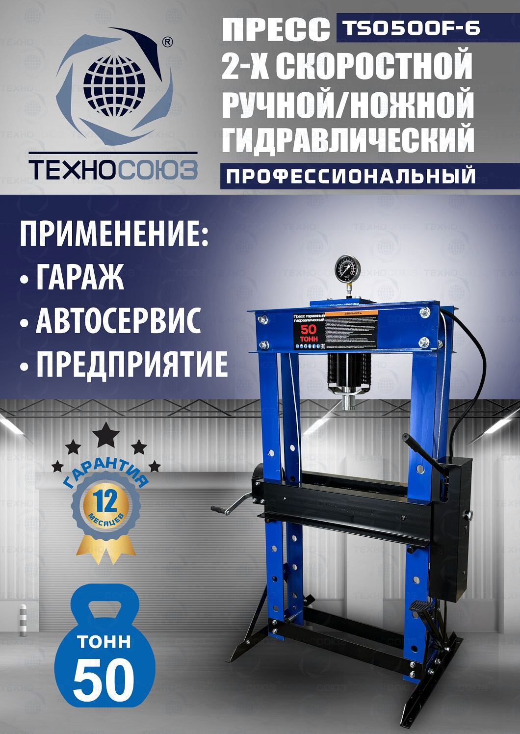 TS0500F-6 Пресс гидравлический ручной/ножной, 50 тонн